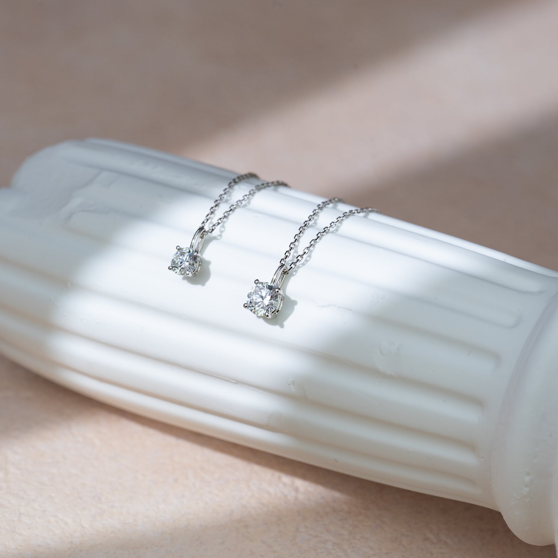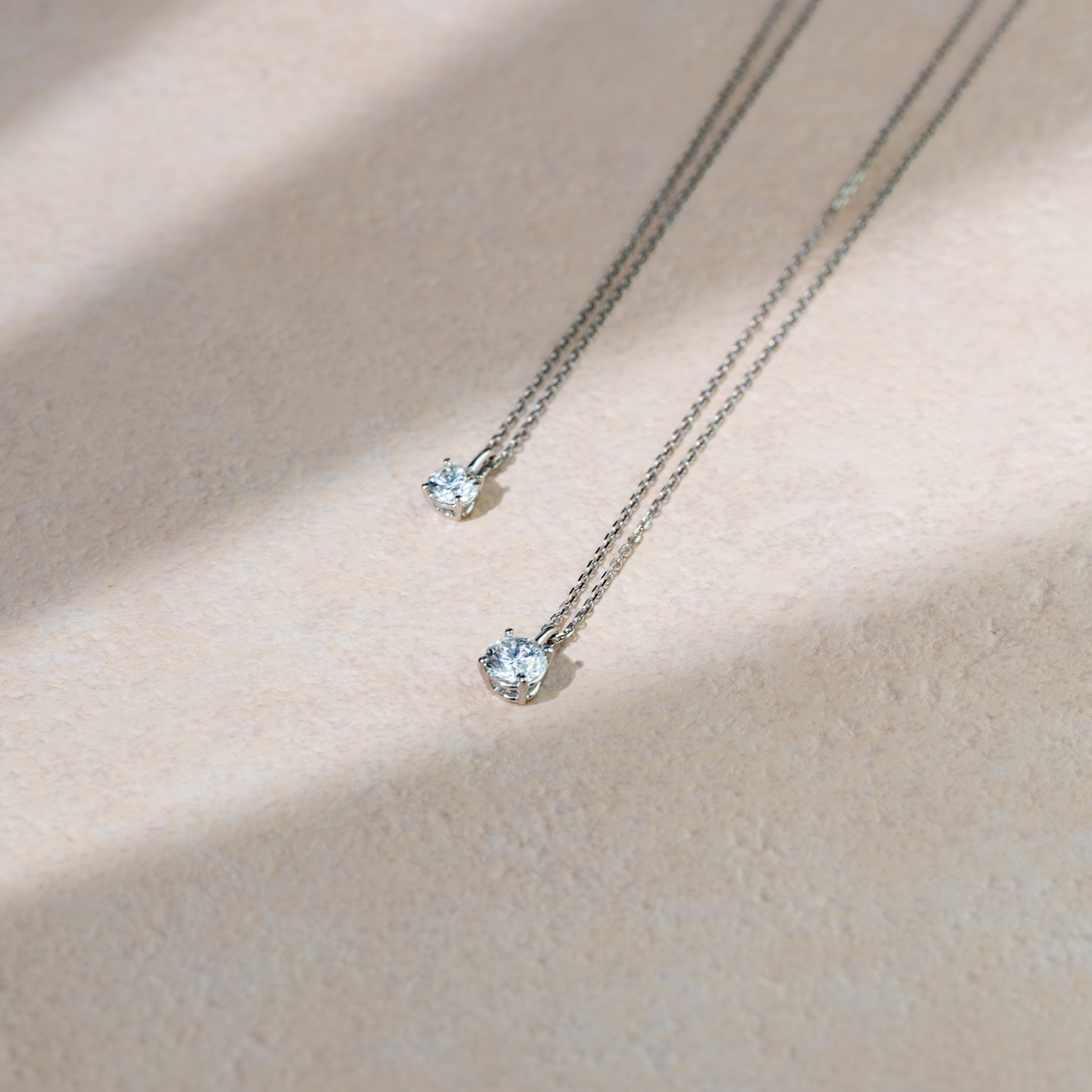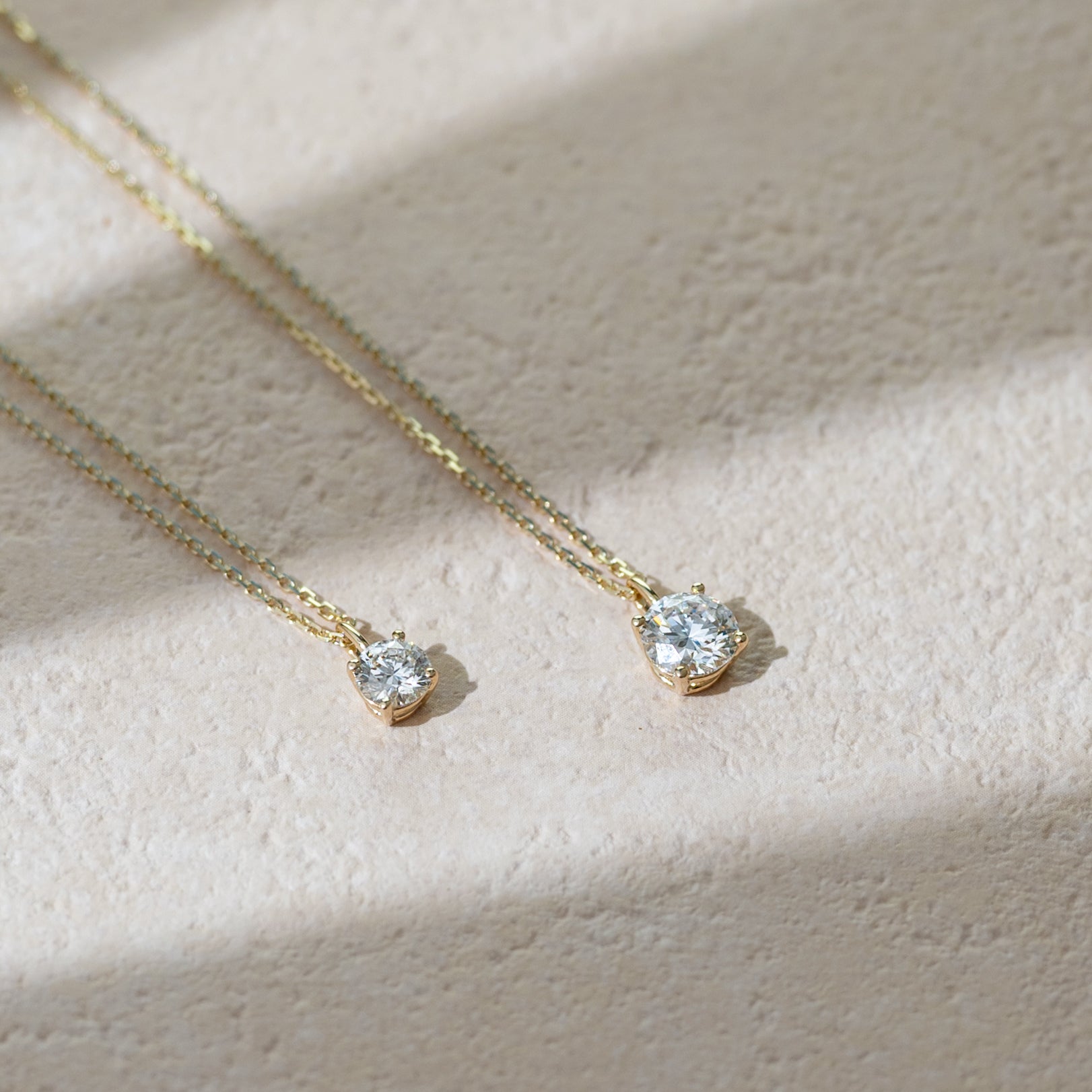 A delicate round-cut lab-grown diamond pendant, suspended on a fine gold chain. Its refined simplicity makes it the perfect everyday piece — luminous on its own, yet effortlessly layered with other necklaces for a personalized touch of elegance.