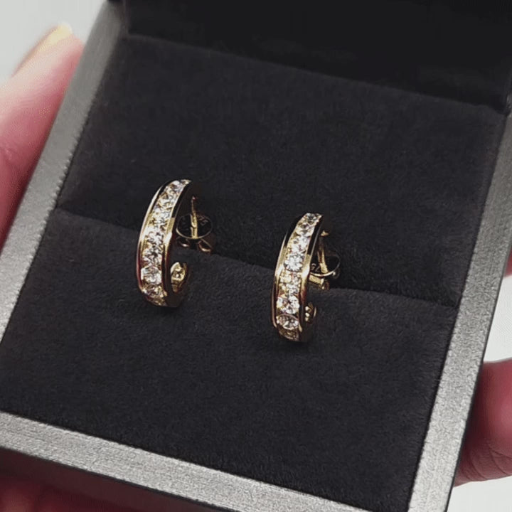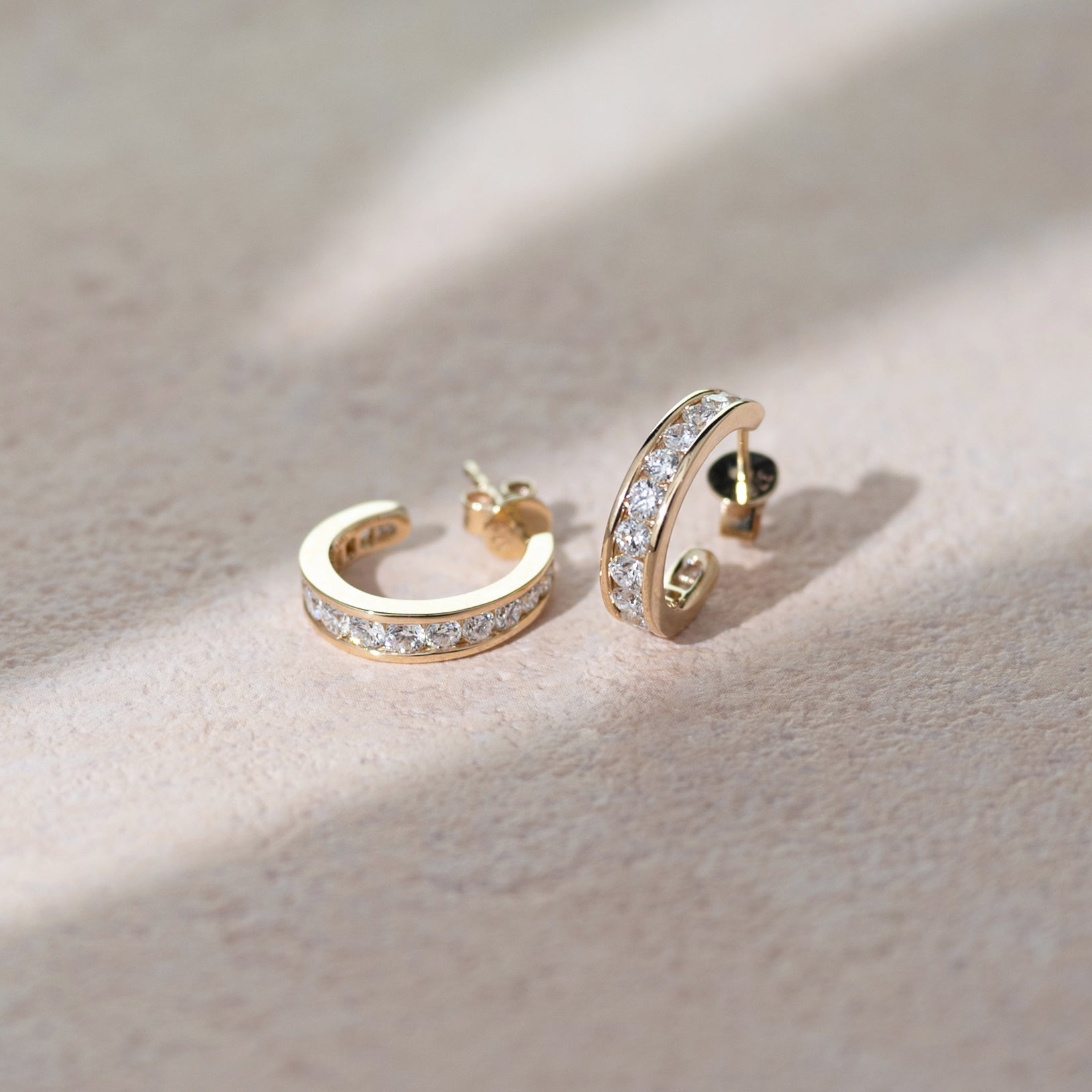 These half pavé diamond hoops bring effortless sophistication to your everyday style. Crafted in luminous solid gold, each hoop is set with a row of brilliant lab-grown diamonds that catch the light from every angle — refined, radiant, and endlessly wearable. Designed for those who appreciate quiet luxury and timeless simplicity.