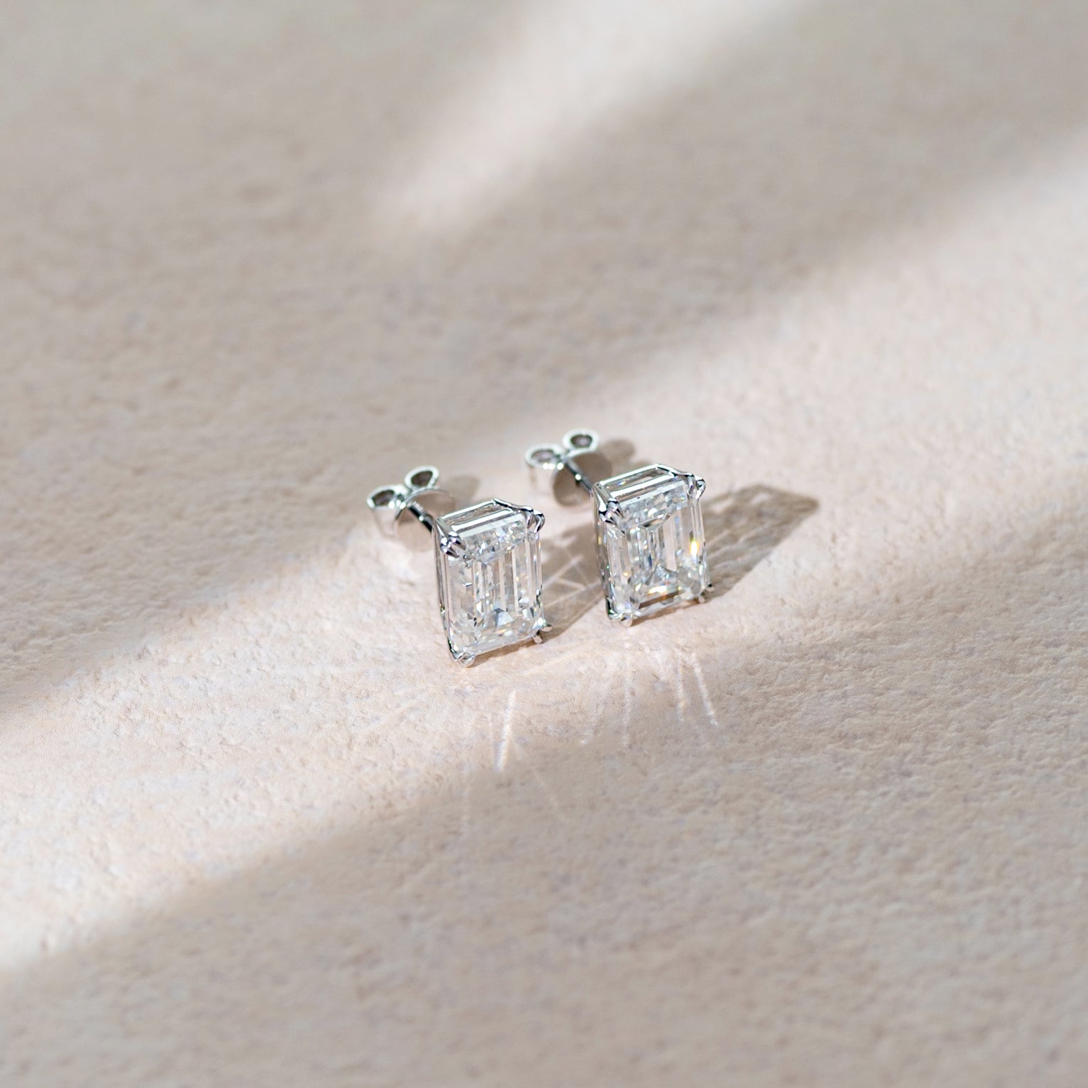 These emerald-cut diamond studs redefine timeless minimalism. Each stone is precision-cut to capture clean lines and quiet radiance. Perfect for your everyday edit — from casual mornings to evening elegance — these studs bring a subtle statement of confidence and grace.
